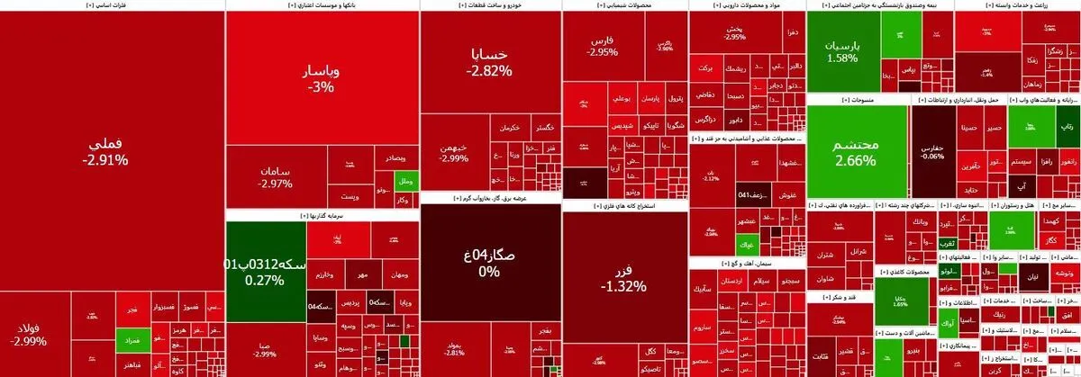 در پایان معاملات امروز، شاخص کل بورس با کاهش ۳۴ هزار و ۹۵۹ واحد به سطح ۲ میلیون و ۷۳۳ هزار واحد رسید.