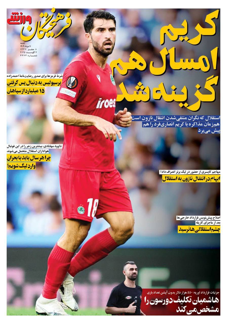 روزنامه‌های ورزشی شنبه 11 مرداد ۱۴۰۴