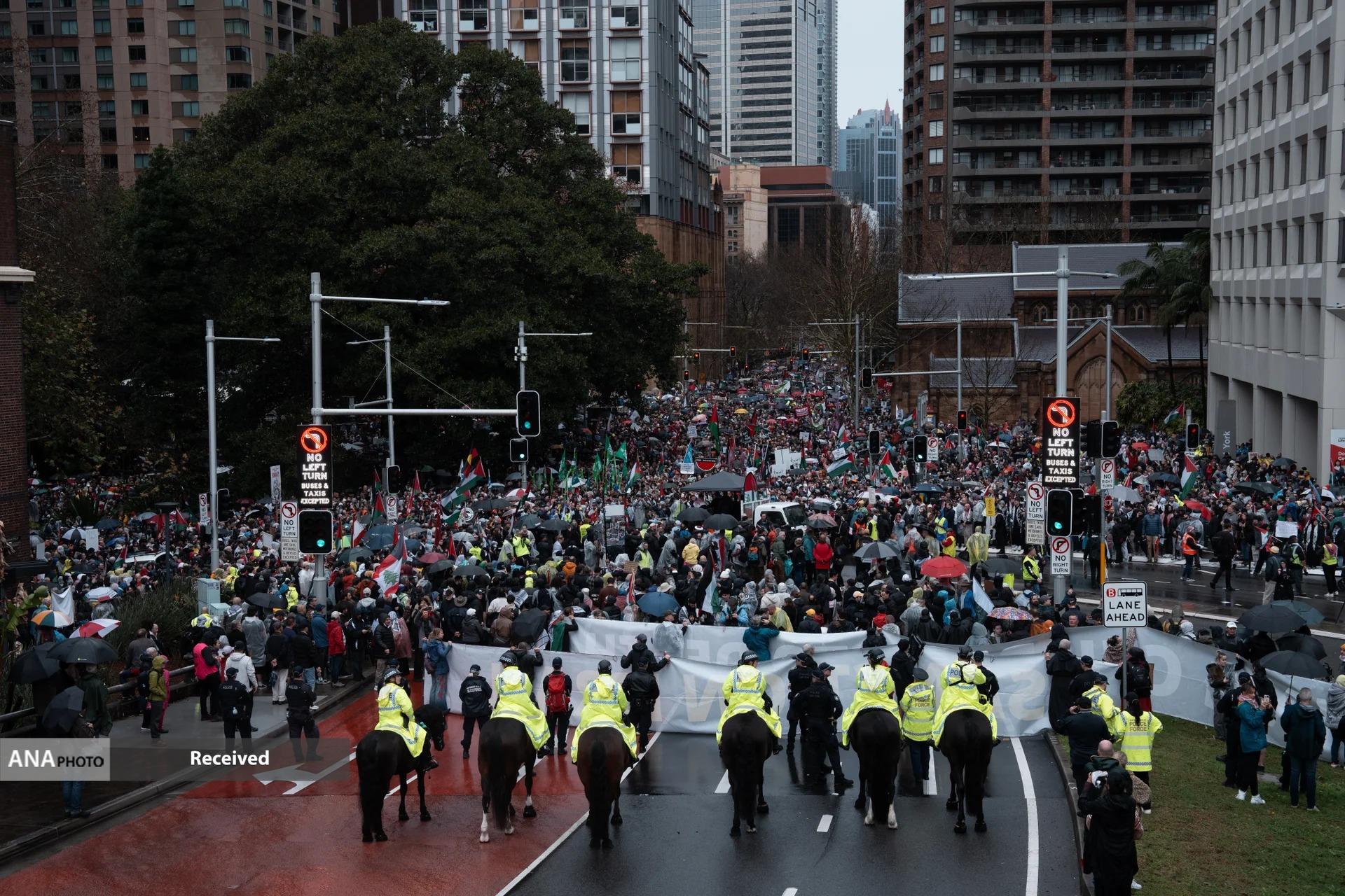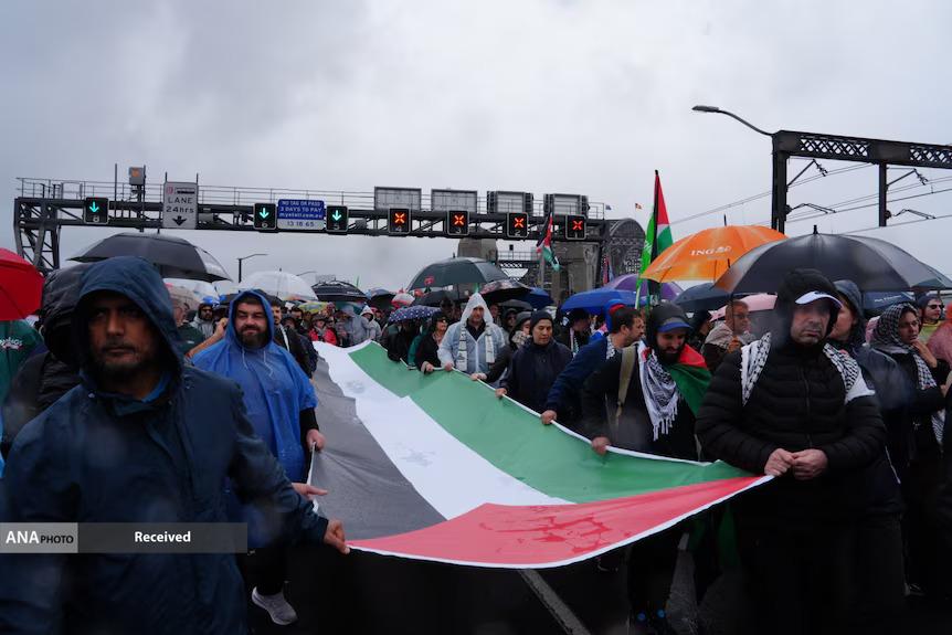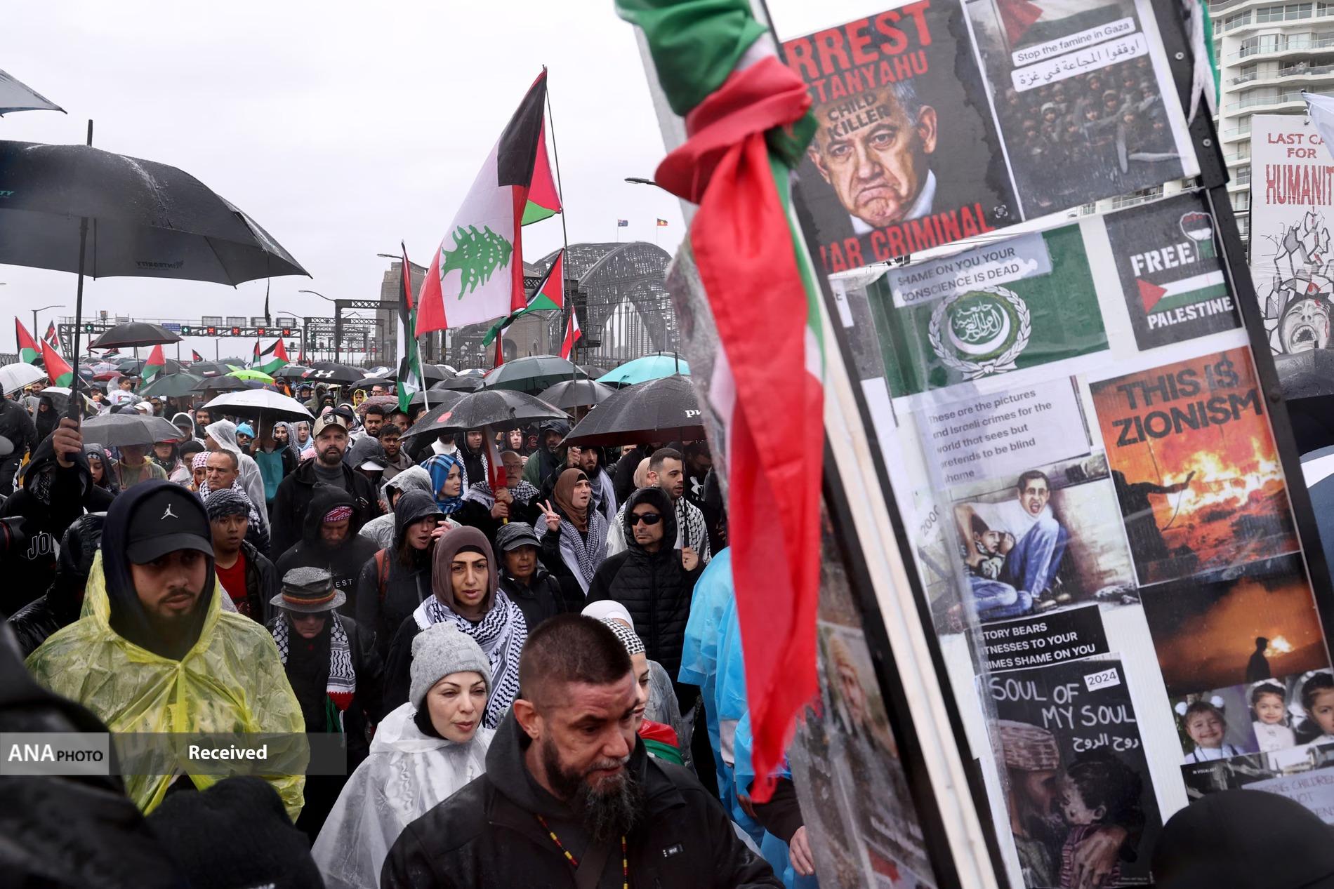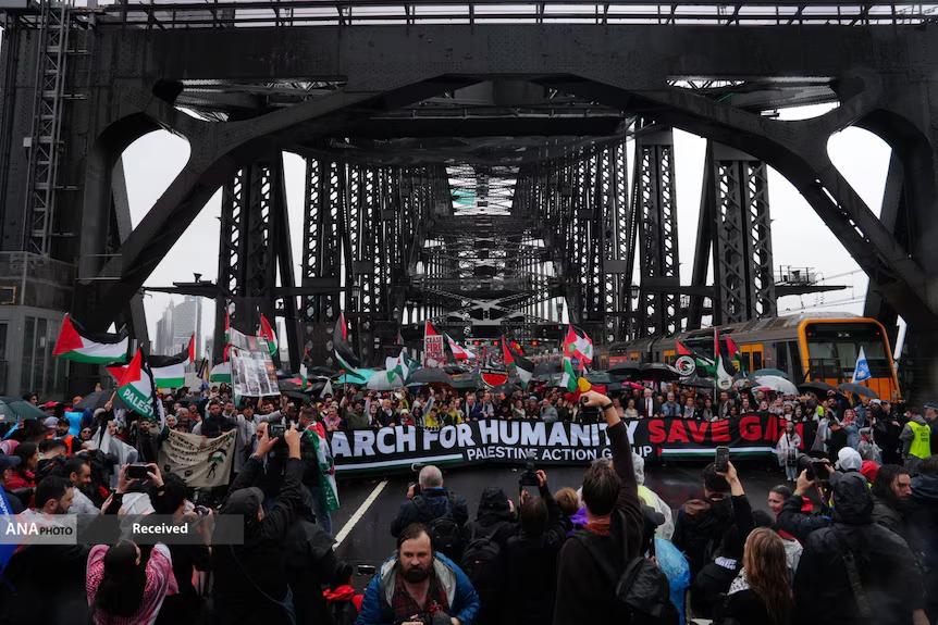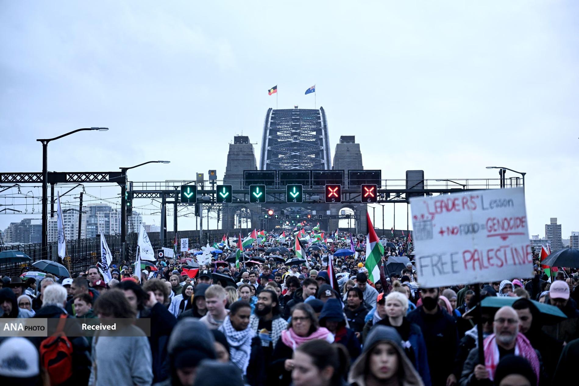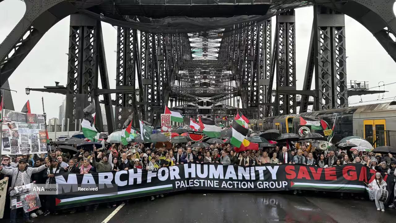 صدها هزار تن از حامیان فلسطین در استرالیا برای نشان دادن حمایت خود از مردم غزه و مخالفت با جنایات رژیم صهیونیستی به خیابان آمدند و در اقدامی بی‌سابقه، پل معروف بندر سیدنی را احاطه کردند. بیش از ۳۰۰ هزار نفر از حامیان فلسطین امروز یکشنبه ۱۲ مرداد ۱۴۰۴، با عبور از پل معروف بندر سیدنی در زیر باران، علیه اقدامات رژیم صهیونیستی در غزه و در حمایت از کودکان گرسنه آن منطقه، راهپیمایی کردند. به گزارش روزنامه گاردین، این پل مشهور از ساعت ۱۱:۳۰ صبح به وقت محلی به روی خودروها بسته شد. معترضان ابتدا در پارک لنگ در مرکز شهر گرد آمدند و سپس در حالی که باران شدیدی می‌بارید، از پل عبور کردند. راهپیمایی از ساعت یک بعدازظهر آغاز شد و معترضان در نهایت تمام مسیر ۱.۲ کیلومتری پل بندر سیدنی را پوشاندند.