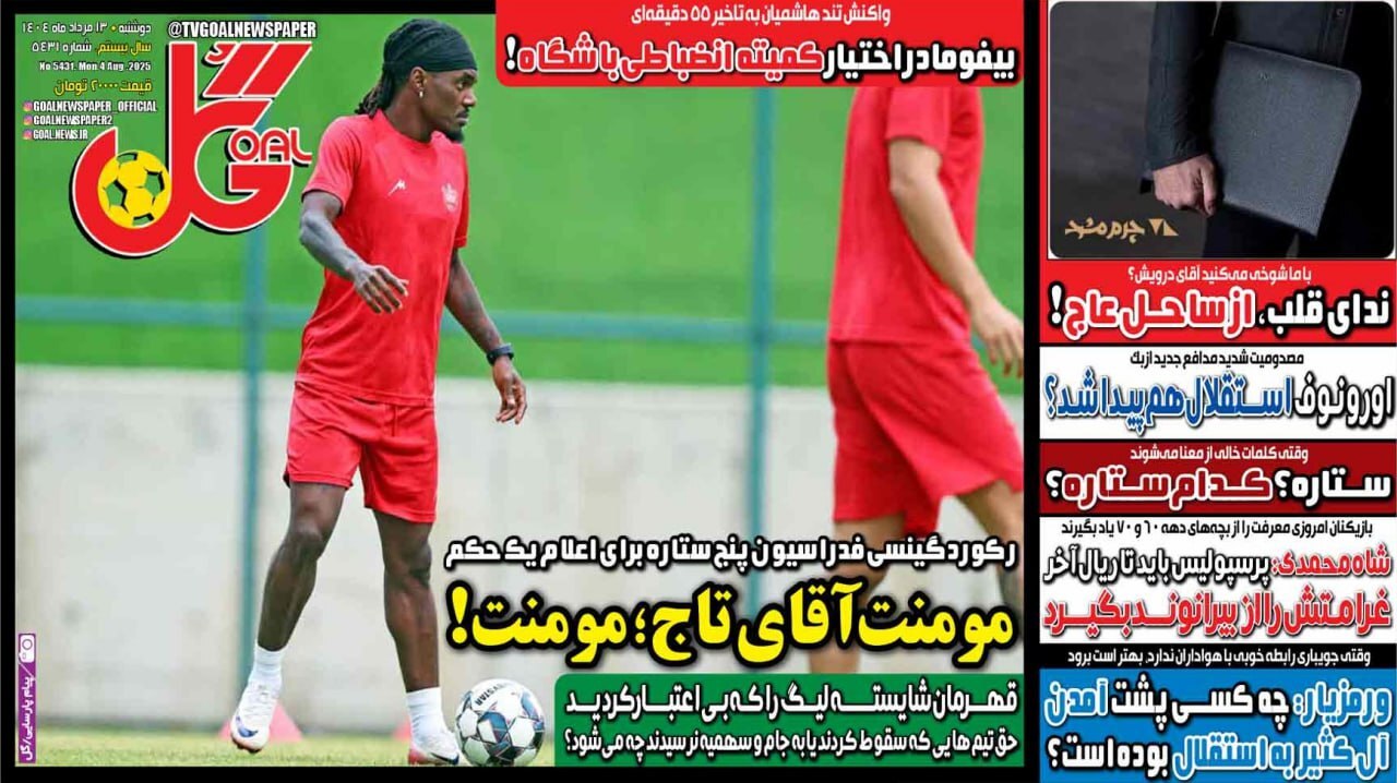 پیشخوان روزنامههای ورزشی دوشنبه ۱۳ مرداد ۱۴۰۴ را مشاهده کنید.