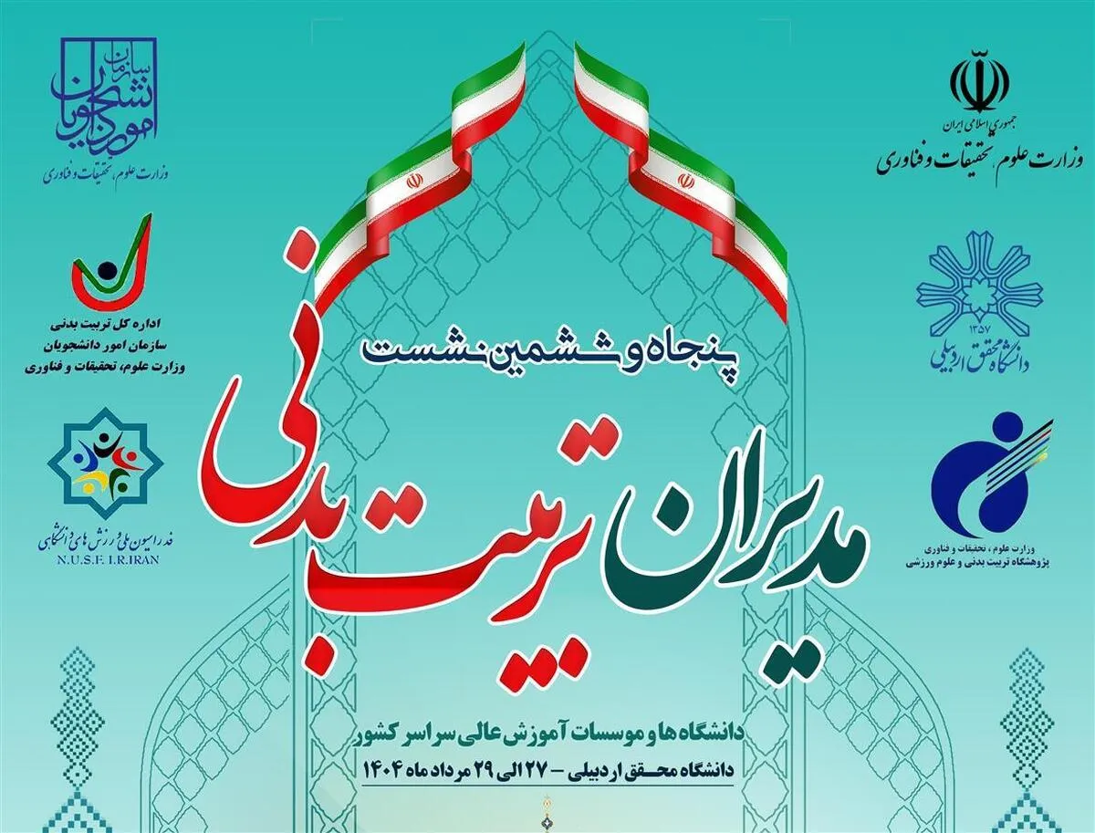 به گزارش آنا، پنجاه و ششمین نشست مدیران تربیت بدنی دانشگاهها و موسسات آموزش عالی کشور ۲۸ و ۲۹ مرداد ۱۴۰۴ با حضور سعید حبیبا معاون وزیر علوم و رئیس سازمان امور دانشجویان، زارعی مدیر کل تربیت بدنی سازمان امور دانشجویان، مدیران تربیت بدنی دانشگاهها و مؤسسات آموزش عالی سراسر کشور و با همکاری پژوهشگاه تربیت بدنی به میزبانی دانشگاه محقق اردبیلی برگزار میشود.