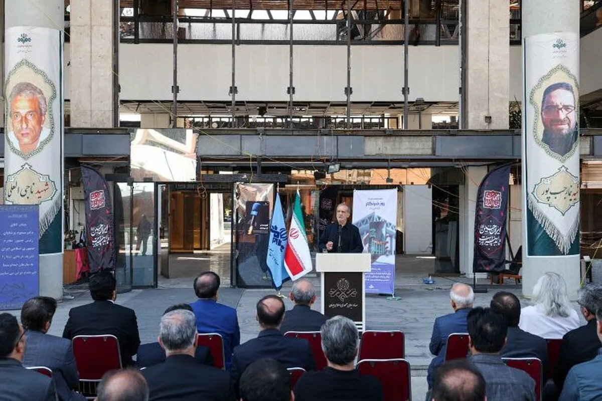رئیس جمهور در جریان بازدید از ساختمان تخریب شده این سازمان در جریان جنگ تحمیلی ۱۲ روزه، در مراسمی که در مقابل این ساختمان به مناسبت روز خبرنگار در حال برگزاری بود، ضمن تبریک روز خبرنگار گفت: صهیونیستها ساختمان صدا و سیما را مورد حمله قرار دادند، چرا که صدا و سیما مؤثر بود و علت حمله نیز همین تأثیرگذاری بود. این در حالی است که طبق قواعد بینالمللی در هیچ جنگی هیچ کس حق ندارد به مراکز رسانهای حمله کند و رژیم صهیونیستی با این حمله نشان داد که به هیچ یک از چارچوبهای بینالمللی پایبند نیست.