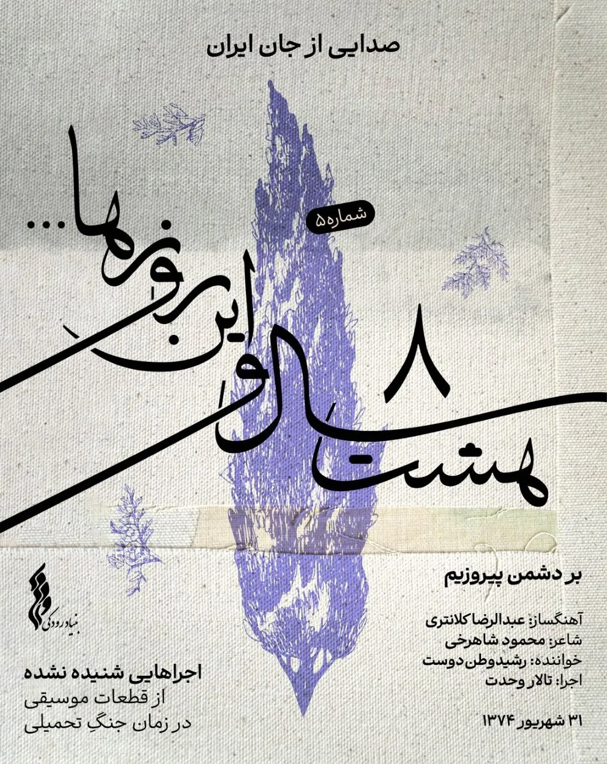 پروژه «هشت سال و این روزها» به همت بنیاد رودکی شکل گرفته است تا میراث موسیقی دوران دفاع مقدس را با بازتابی صادقانه از همدلی هنرمندان با رزمندگان و مدافعان میهن در طول این سالها و ایام زنده نگه دارد. در ادامه این پروژه و در آینده قطعات دیگری از بزرگان موسیقی اصیل و ارکسترال ایرانی در دسترس علاقهمندان قرار خواهد گرفت.