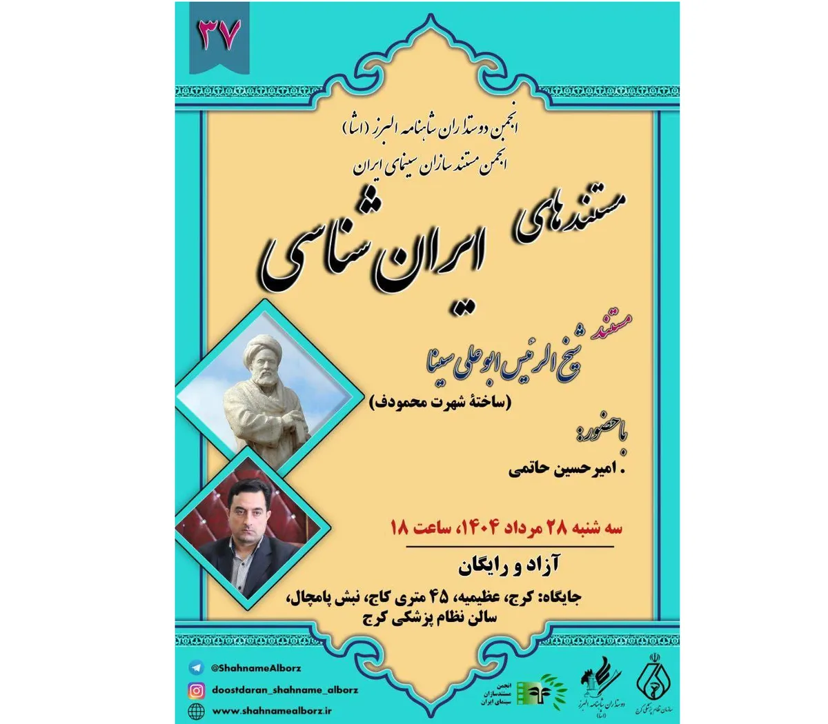 به گزارش خبرگزاری آنا، سی و هفتمین برنامه نمایش مستند‌های ایرانشناسی به مناسبت روز پزشک و گرامیداشت پزشکان ایران به نمایش مستندی با موضوع ابوعلی سینا دانشمند ایرانی اختصاص دارد. مستند «شیخ الرئیس ابوعلی سینا» ساخته شهرت محموداف فیلمساز اهل تاشکند سه‌شنبه ۲۸ مردادماه ساعت ۱۸ نمایش داده خواهد شد.