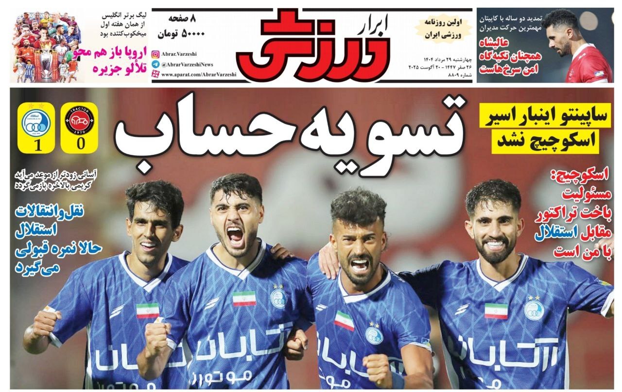 روزنامههای ورزشی چهارشنبه ۲۹ مرداد ۱۴۰۴