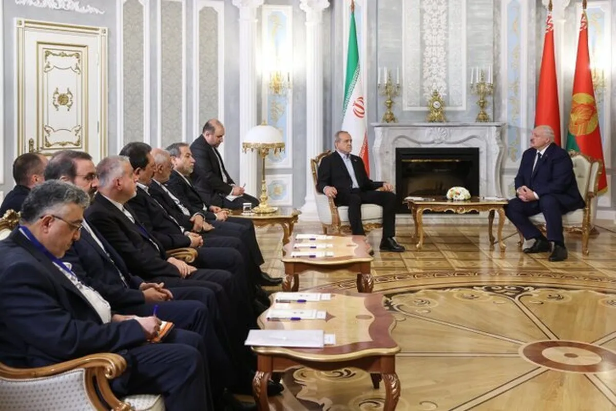 به گزارش خبرگزاری آنا، در جریان سفر مسعود پزشکیان به بلاروس، ظهر امروز چهارشنبه ۲۹ مرداد، مقامات عالیرتبه ایران و بلاروس، در حضور روسای جمهور ۲ کشور، ۱۲ سند همکاری در حوزههای سیاسی، حقوق بینالملل، گردشگری، هنری، رسانهای، بهداشت و سلامت، دارویی، صنعتی، محیط زیست، مناطق آزاد، صنعتی و ویژه اقتصادی و سرمایهگذاری به امضا رساندند.