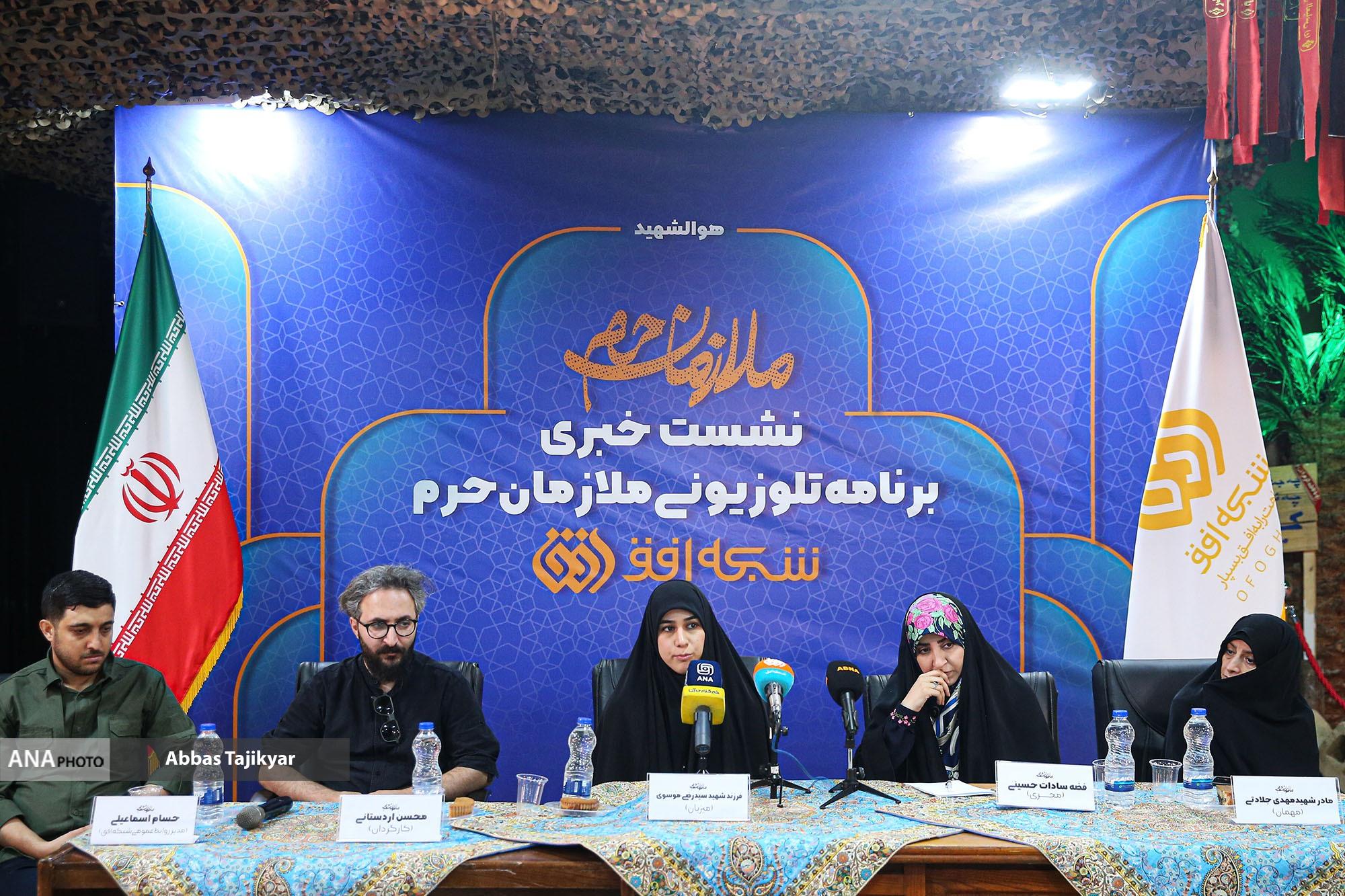 نشست خبری برنامه تلویزیونی «ملازمان حرم» صبح امروز با حضور مادر شهید مهدی جلادتی و فرزند شهید سید رضی موسوی، محسن اردستانی کارگردان فضه سادات حسینی مجری برنامه و حسام اسماعیلی روابط عمومی شبکه افق برگزار شد.