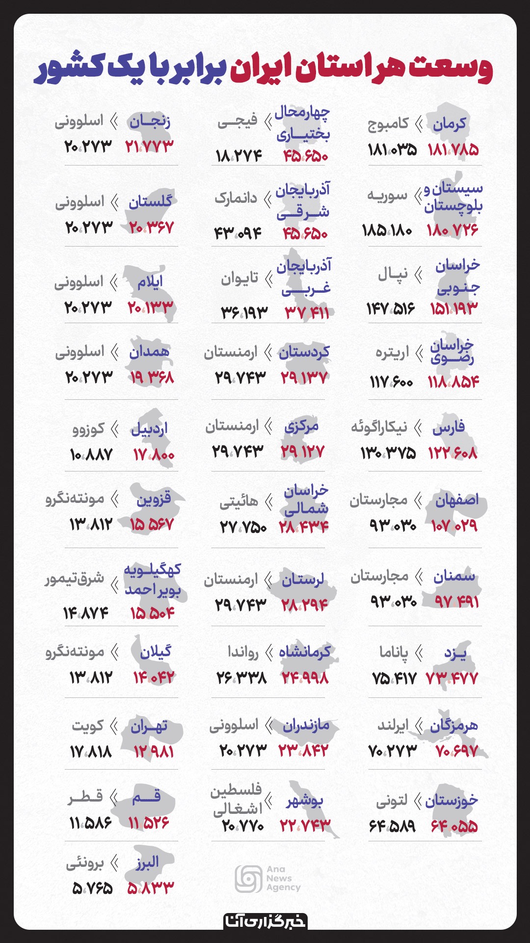 وسعت هر استان ایران برابر با یک کشور