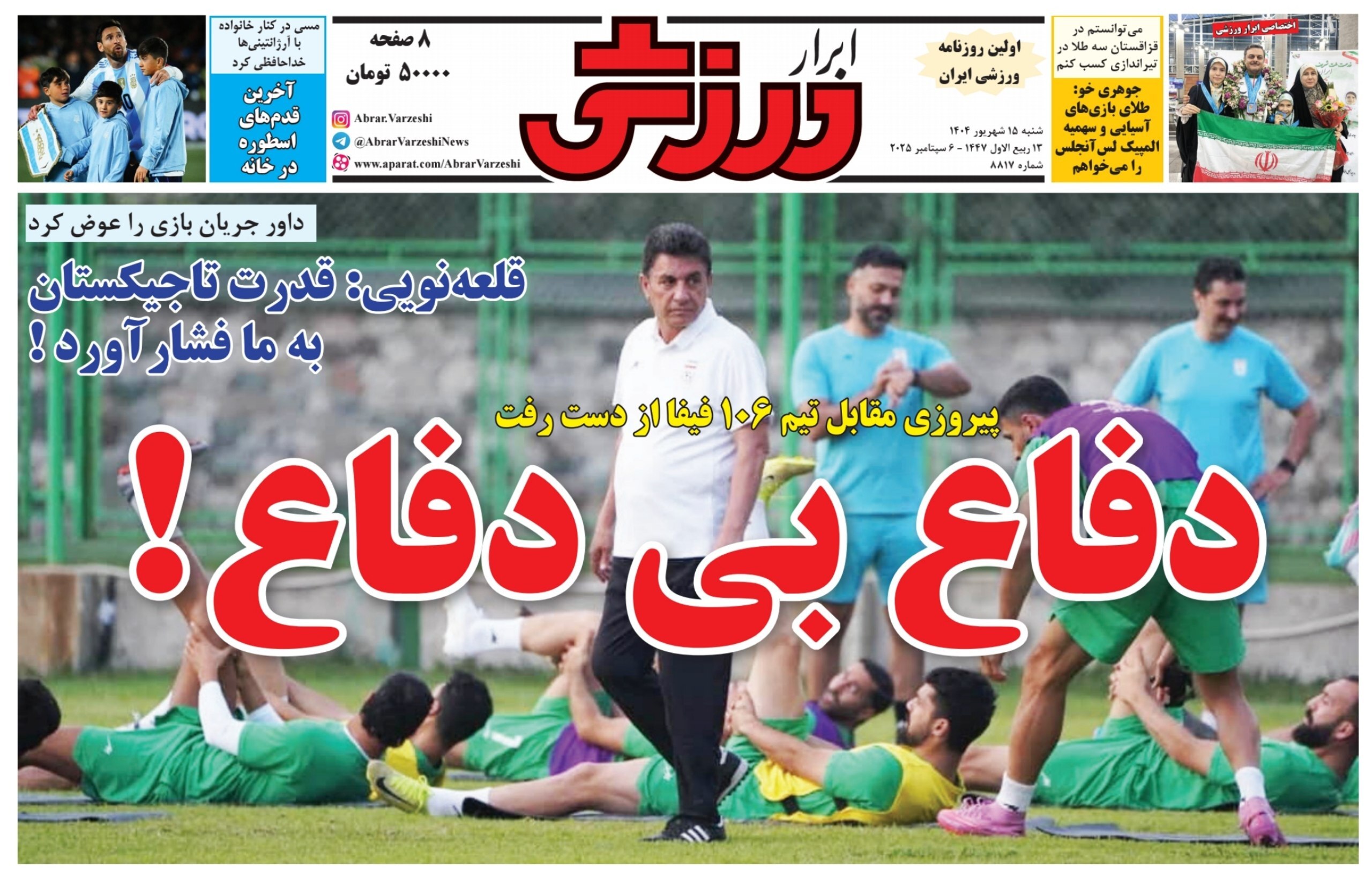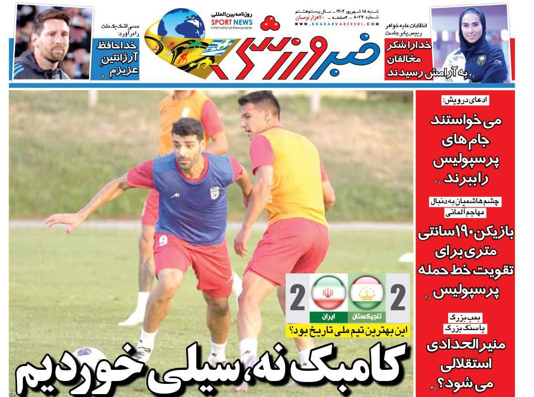 روزنامههای ورزشی شنبه ۱۵ شهریور ۱۴۰۴