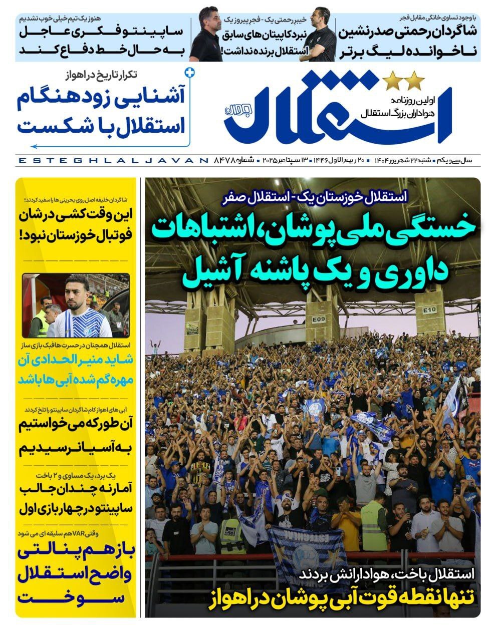 روزنامههای ورزشی شنبه 22 شهریور ۱۴۰۴