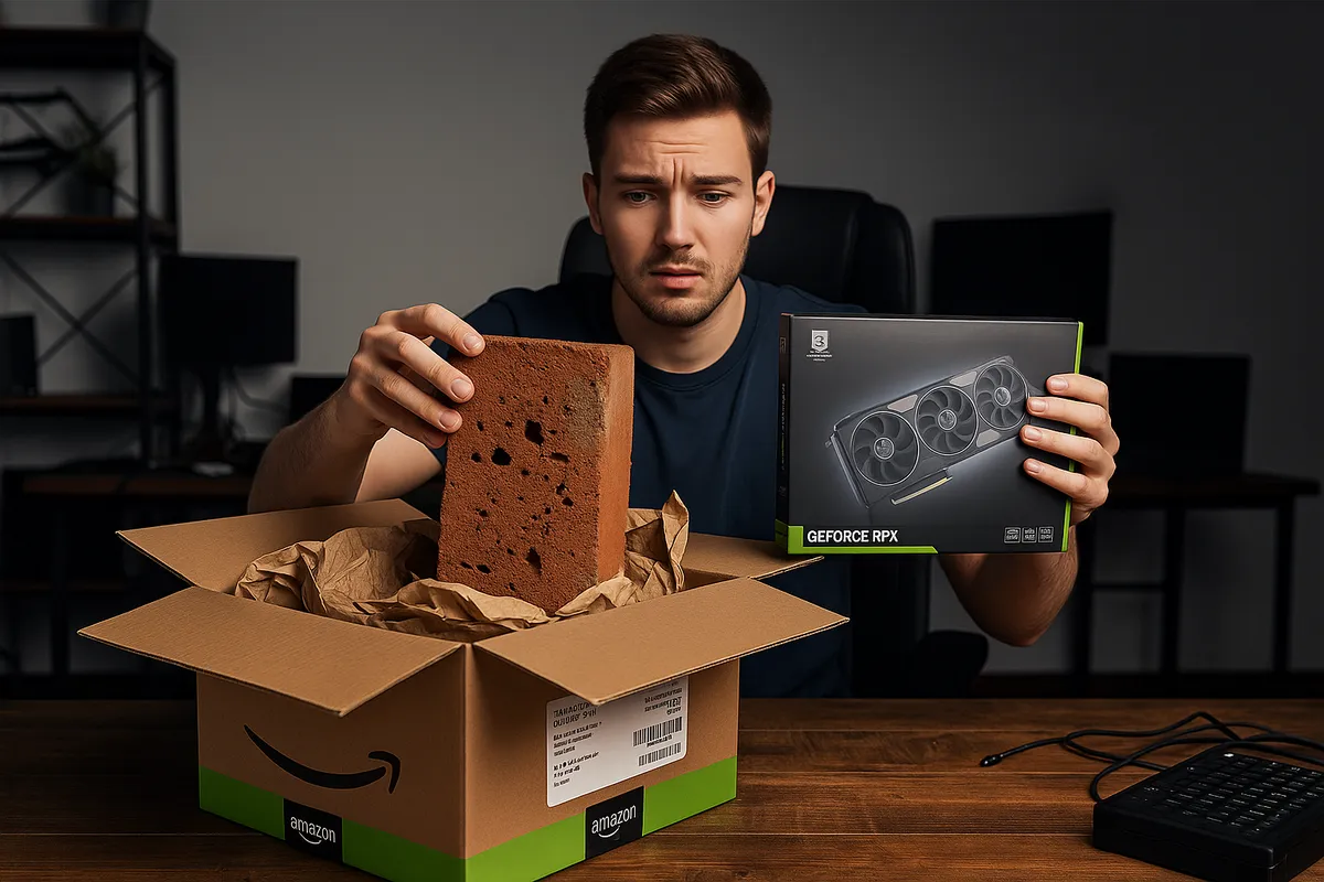 یک کاربر پس از خرید کارت گرافیک PNY GeForce RTX ۵۰۸۰ از فروشگاه رسمی این شرکت در وبسایت آمازون، بستهای دریافت کرد که به جای قطعه سختافزاری، حاوی یک آجر بود. این آجر در کیسه ضد الکتریسیته ساکن که معمولاً برای بستهبندی قطعات الکترونیکی حساس استفاده میشود، قرار داده شده بود. این حادثه، یکی از چندین مورد مشابه در سالهای اخیر است و به نظر میرسد به یک ایراد ساختاری در فرآیند مدیریت موجودی کالا در انبارهای آمازون، موسوم به ادغام موجودی، مرتبط باشد.