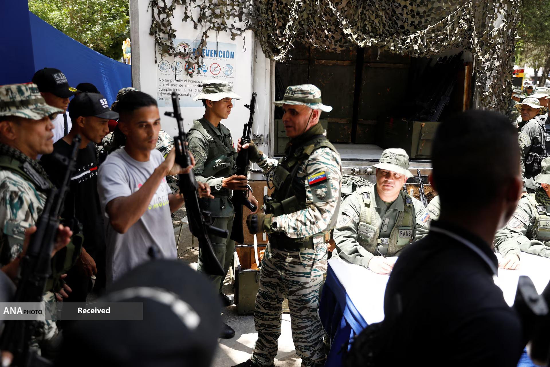نیروهای نظامی ونزوئلا با تشدید تنشها با ایالات متحده بر سر افزایش حضور نظامی آمریکا در کارائیب و حملات اخیر به کشتیهای ونزوئلایی، خودروهای زرهی را به کار گرفتند و آموزش کار با سلاح را برای غیرنظامیان در کاراکاس انجام دادند.